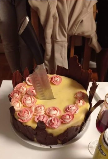Dejv s Láďou mě vyhnali z kuchyně, ať si tu rozlučku pořádně užiju. Škoda, že nápis „Tady je Dejvovo”, který nalepili na kuchyňské dveře, je pouze na ubrousku. Ráda bych tam tu nepředstavitelnou věc měla napořád. Dejv se jinak kuchyni vyhýbá obloukem.