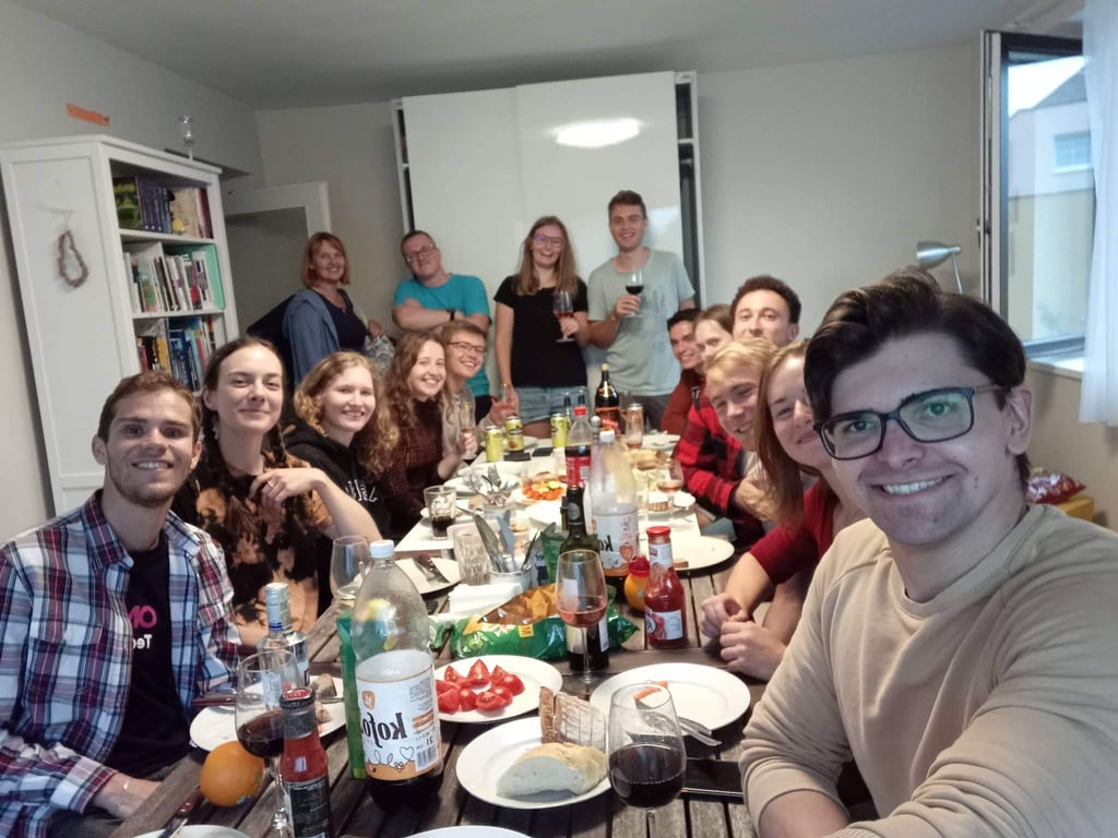 V pondělí jsem uspořádala malou rozlučku. Plán byl grilovat na zahradě, jenže počasí mi ho zatrhlo. Celý den se mraky přímo mračily, pršelo a mně nezbylo než si tu rozlučku uspořádat u sebe v pokoji a v kuchyni. Situaci zachránil kontaktní gril a Dejvovo uklidňování, že to bude dobrý. Tedy jsme vystěhovali můj pokoj, nanosili do něj dva stoly a nějakým zázrakem jsme se tam všichni vešli. Všech 16 lidí. Ještě, že jsem jich nepozvala víc (velké pardon nepozvaným, snaha byla mít rozumný počet lidí, co se aspoň trochu znají, nezbořit dům a nenakazit se covidem na poslední chvíli).